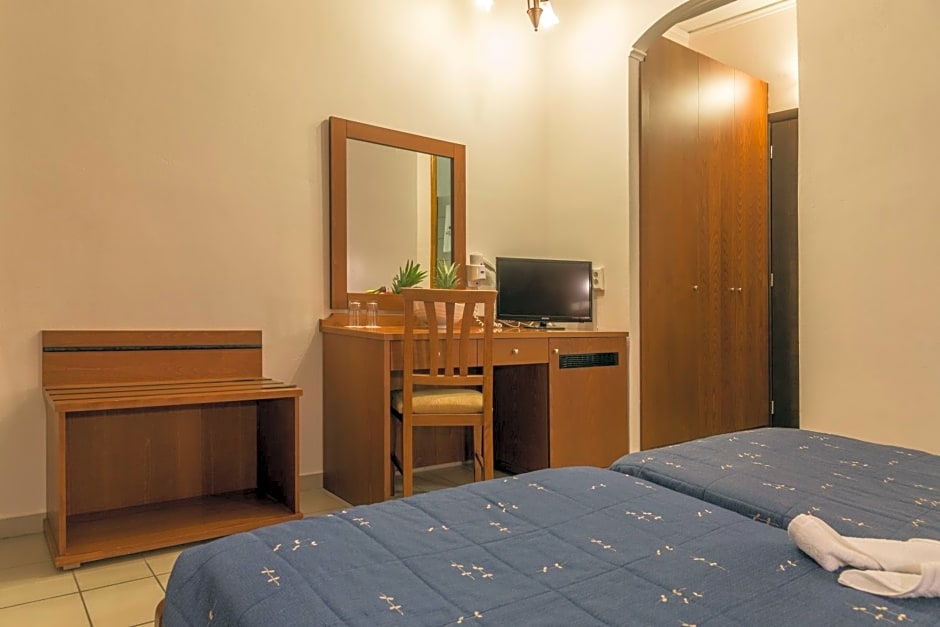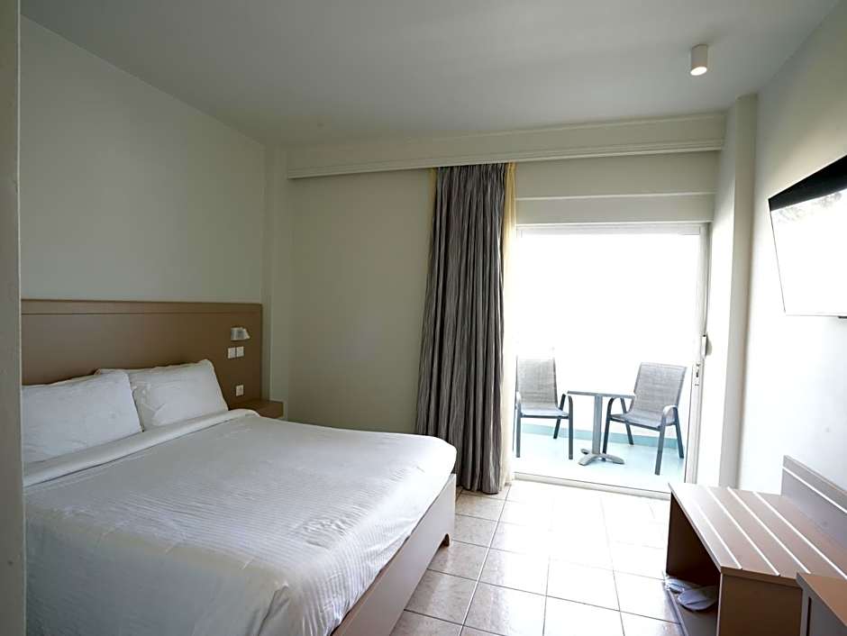 Extra touches include an elevator with access to upper floors, an included balcony, extra-long beds (>6.5 ft), and a garden view from select rooms. The property also features a playground, a garden setting, and spaces to enjoy the view, making a stay at Agrelli Hotel & Suites feel like a breezy Greek escape just steps from the beach.